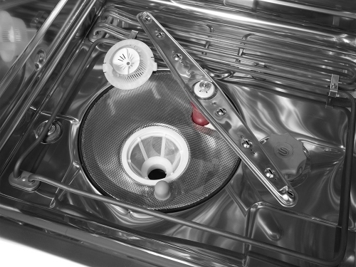 Благодаря особой конструкции цельнотянутого моечного бака с двойными стенками и закругленными углами по краям стенок устройства не скапливается грязь. Автоматическая система безопасности блокирует дверцу при запуске цикла, а система мытья с мягким стартом насоса не повредит посуду сильным напором воды.