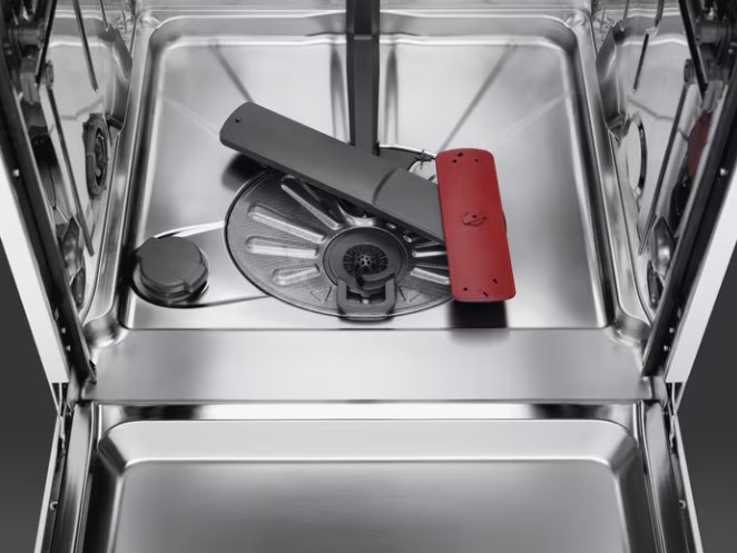 Встраиваемая модель АЕГ отлично впишется в любой интерьер, главное — правильно выбрать место, чтобы подвести коммуникации. Устанавливается в нишу целиком, полностью закрывается декоративной панелью. Обратите внимание: в комплекте не идет фасад, его необходимо установить самостоятельно. Имеет стандартные размеры, поэтому может не поместиться на очень маленькой кухне. В камеру можно загрузить ограниченное число комплектов: 13 шт. Комплектом считается набор посуды на одного человека, который нужен для полноценного приема пищи: глубокая и плоская тарелки, тарелка для салата, блюдце под чашку, сама чашка, ложка и вилка.