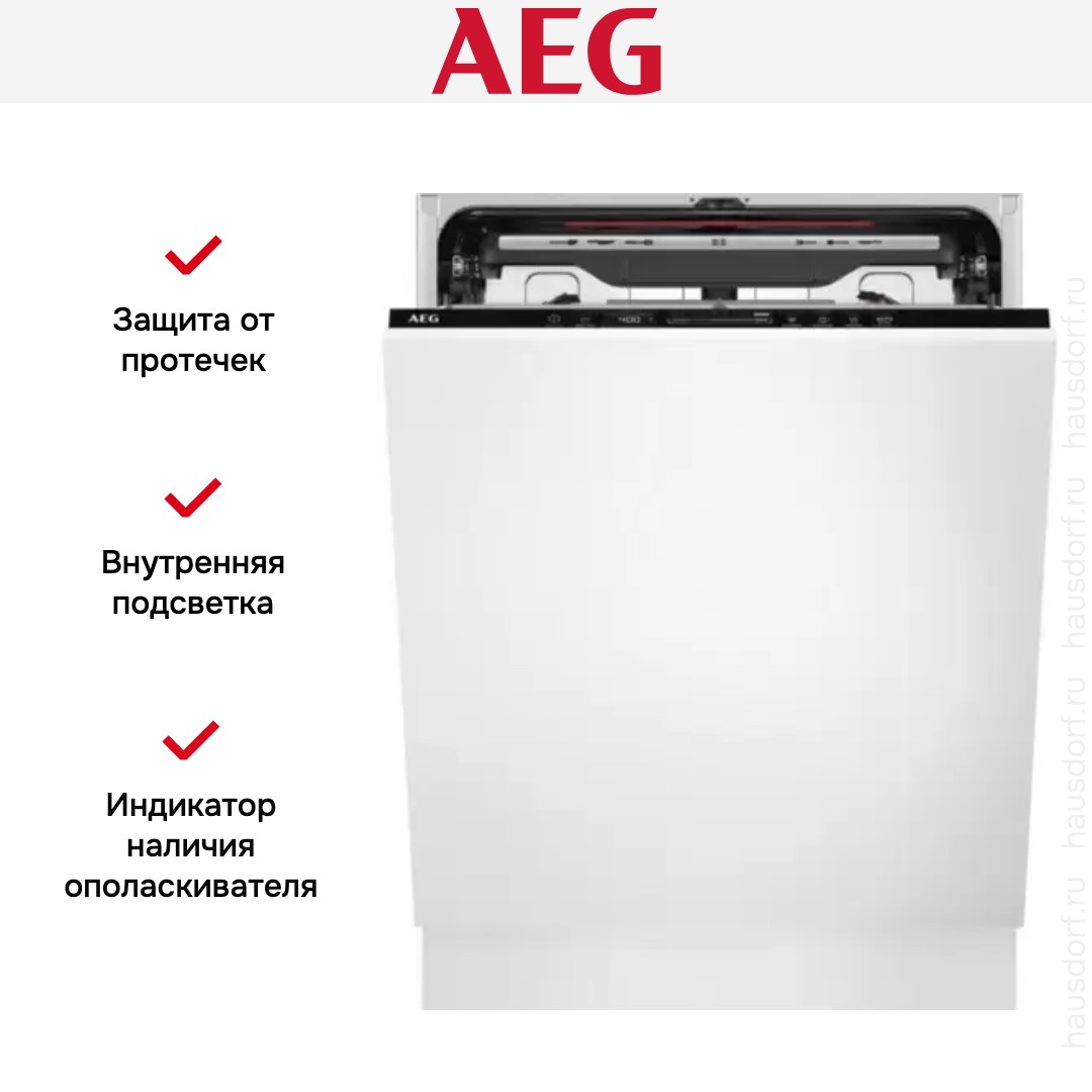 Посудомоечная машина AEG FSE73727P — встраиваемая полноразмерная модель с полностью скрытой панелью, созданная для аккуратной интеграции в кухонный гарнитур. Корпус рассчитан на установку в нишу 82-90 см по высоте, 60 см по ширине и 55 см по глубине, а внешние габариты составляют 81.8—89.8×59.8×55 см. Цвет фасада вы подберёте под свой кухонный шкаф, а панель управления выполнена в чёрном цвете для контрастной и лаконичной отделки. Встроенная подсветка камер облегчает загрузку вечером или в глубине шкафа и позволяет быстрее расположить посуду оптимально. Модель весит 36 кг, что облегчает монтаж и при необходимости перемещение внутри кухни.
