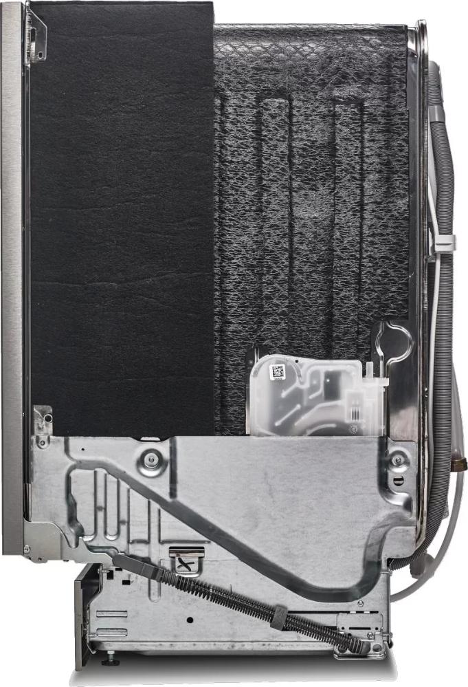 Среди восьми стальных элементов можно выделить: рабочую камеру, которая, кроме того, имеется всего один сварной шов, корзины с мелкой сеткой и направляющие для их выдвижения, трубки для подачи воды в камеру, разбрызгиватели, которые при вращении подвергаются значительным механическим воздействиям, фильтр тонкой очистки, основание, ножки и проточный нагревательный элемент. Кроме того, подобные машины не имеют резиновой манжеты, под которой часто образуется плесень, вследствие чего появляется неприятный запах.