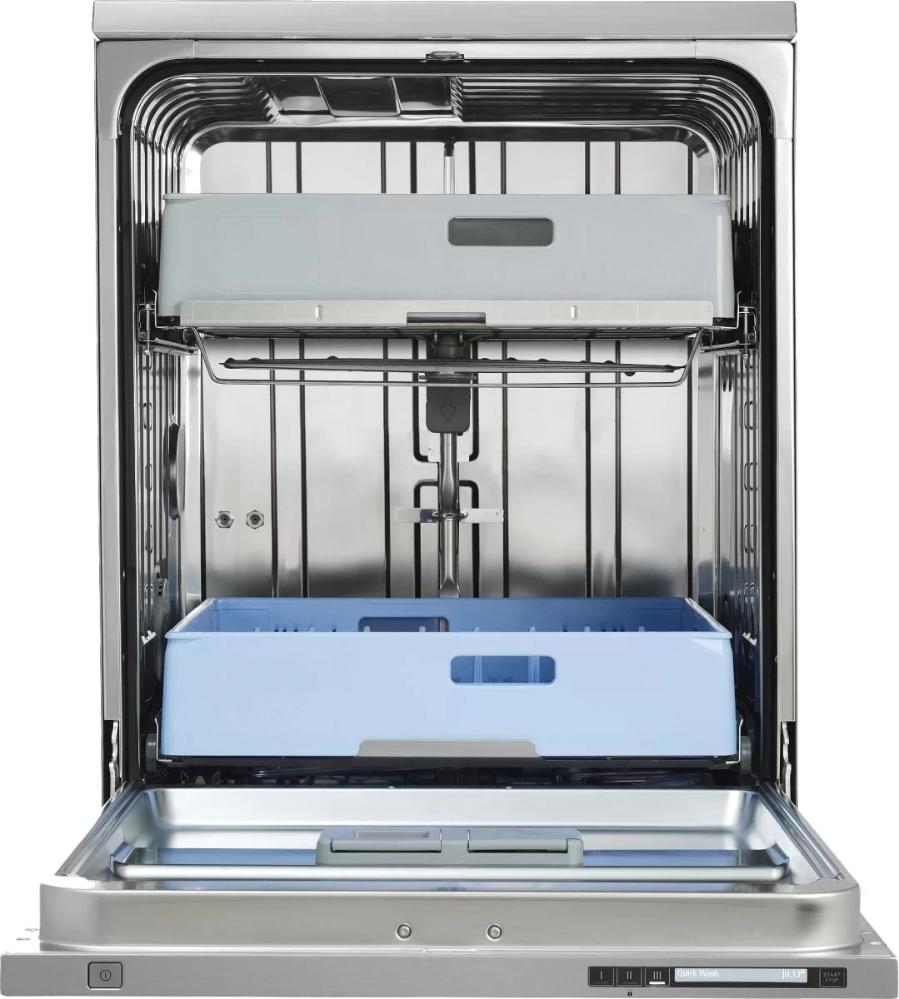 Полноразмерные модели выбирают в больших семьях, а также те, кто много готовит или часто принимает гостей. Их вместимость может составить до 15 комплектов посуды, а габаритные размеры соответствуют размерам стандартной кухонной мебели шириной и глубиной 60 см и высотой 82-85 см. Они выпускаются как во встраиваемом, так и в отдельностоящем варианте: во втором случае для установки понадобится достаточно много места. Как правило, полноразмерные приборы отличаются большим набором стандартных и специальных программ мойки, а также дополнительных опций: в частности, они оснащаются третьей корзиной для мытья столовых приборов.