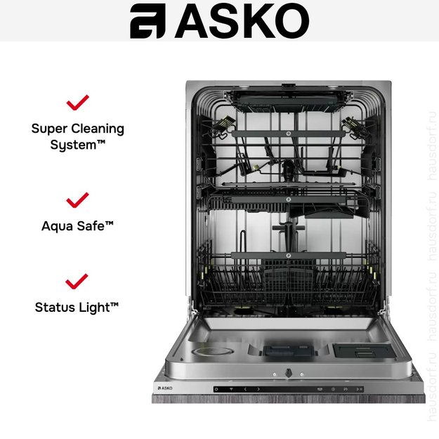 За счет подачи теплого воздуха в конце цикла капли воды быстро удаляются с поверхности, не оставляя разводов. По завершении дверь открывается автоматически благодаря контролю специальных датчиков. Внутри установлено четыре светодиодные лампы для полноценного освещения, чтобы вы могли проверить состояние посуды при необходимости.