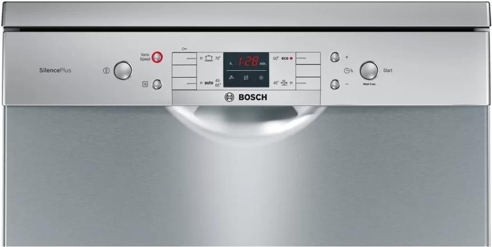 Отдельностоящая модель Бош отлично впишется в кухонный интерьер, главное — правильно выбрать место, чтобы подвести коммуникации. Имеет стандартные размеры, поэтому может не поместиться на очень маленькой кухне. В камеру можно загрузить ограниченное число комплектов: 12 шт. Комплектом считается набор посуды на одного человека, который нужен для полноценного приема пищи: глубокая и плоская тарелки, тарелка для салата, блюдце под чашку, сама чашка, ложка и вилка.
