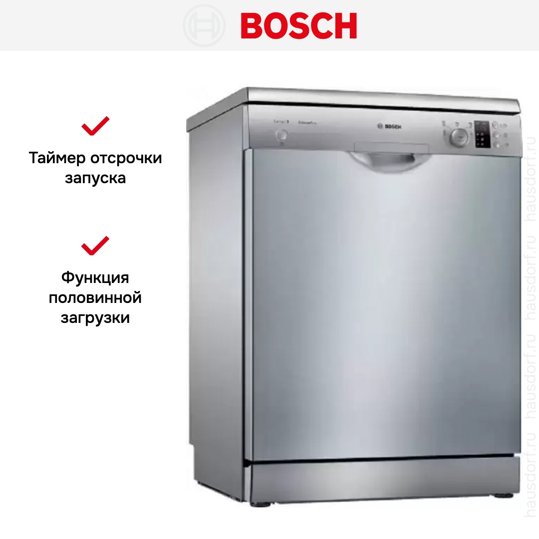 Посудомоечная машина Bosch SMS25AI05E — это разумный выбор для тех, кто ищет надёжность, компактность и высокую эффективность в повседневной эксплуатации. Независимая модель рассчитана на загрузку до 12 комплектов посуды, что делает её оптимальной как для небольших семей, так и для регулярного использования в квартирах с умеренным объёмом кухонной утвари. Её лаконичный дизайн с интуитивной панелью управления гармонично вписывается в современные интерьеры.
