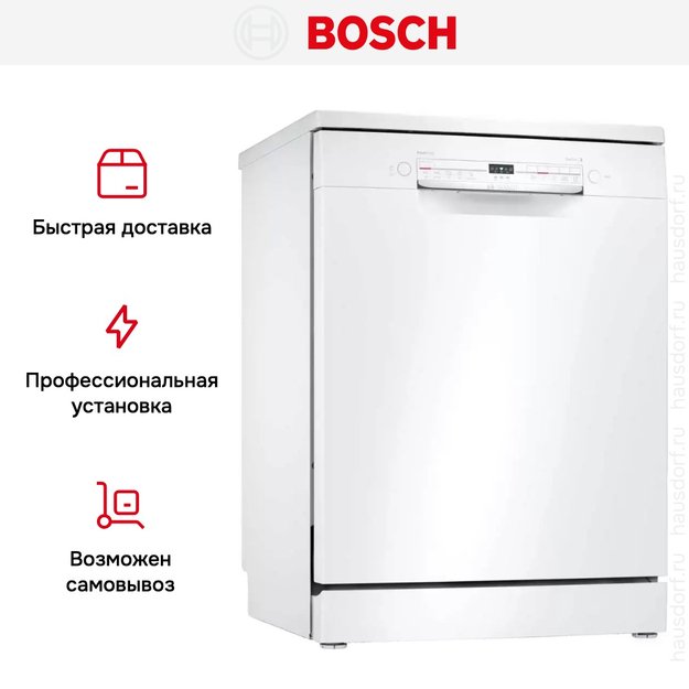 Отдельностоящая модель Бош отлично впишется в кухонный интерьер, главное — правильно выбрать место, чтобы подвести коммуникации. Имеет стандартные размеры, поэтому может не поместиться на очень маленькой кухне. В камеру можно загрузить ограниченное число комплектов: 12 шт. Комплектом считается набор посуды на одного человека, который нужен для полноценного приема пищи: глубокая и плоская тарелки, тарелка для салата, блюдце под чашку, сама чашка, ложка и вилка.