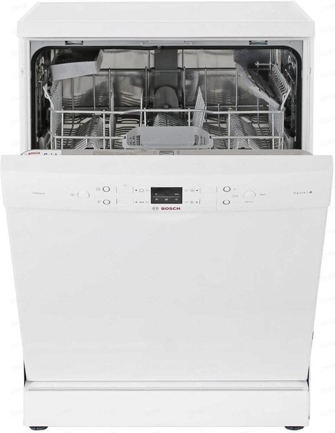 Отдельностоящая модель Бош отлично впишется в кухонный интерьер, главное — правильно выбрать место, чтобы подвести коммуникации. Имеет стандартные размеры, поэтому может не поместиться на очень маленькой кухне. В камеру можно загрузить ограниченное число комплектов: 12 шт. Комплектом считается набор посуды на одного человека, который нужен для полноценного приема пищи: глубокая и плоская тарелки, тарелка для салата, блюдце под чашку, сама чашка, ложка и вилка.