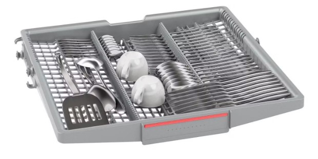 Как правило, полки для столовых приборов находятся в верхней корзине — таким образом, чтобы под ними можно было расположить, например, небольшие чашки. Часто полки оснащаются специальными разделителями, которые позволяют зафиксировать любой предмет, чтобы он не мог случайно сдвинуться с перекрыть доступ к соседним. В ряде моделей для столовых приборов предусматриваются большие полки, которые размещаются на третьем уровне. Такая конструкция считается оптимальной, так как освобождается место в корзинах для более крупных предметов. Такие полки достигают в высоту 5 см, так что на них можно размещать не только обычные ножи, ложки или вилки, но и более объемные половники, шумовки, лопатки, терки и другую подобную утварь.