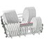 Направляющие для тарелок в корзинах посудомоечных машин позволяют разместить фаянсовую, фарфоровую, стеклянную посуду максимально безопасно и обеспечить ее лучшую очистку. Тарелки и блюдца разного размера могут размещаться как в верхней, так и в нижней корзине. В нижней части верхней корзины, как правило, имеются волнообразные или полукруглые выступы для установки небольших тарелок, мисок и блюдец. Специалисты рекомендуют устанавливать посуду в передней части корзины углублением назад, а тарелки в задней части корзины — углублением вперед, чтобы струи воды могли очистить их более эффективно.