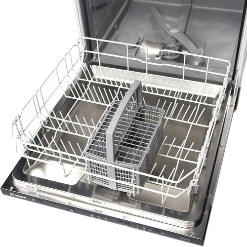 Корзина для столовых приборов — один из обязательных аксессуаров, которыми оснащается любая посудомоечная машина. Она представляет собой сетчатый пластиковый органайзер, в котором устанавливаются в вертикальном положении ложки, ножи и вилки. Корзина, как правило, разделяется на отдельные отсеки, в каждый из которых можно поместить один или несколько предметов. Зачастую сверху она закрывается специальной крышкой, которая также служит для разделения приборов, способствуя более тщательному их мытью.