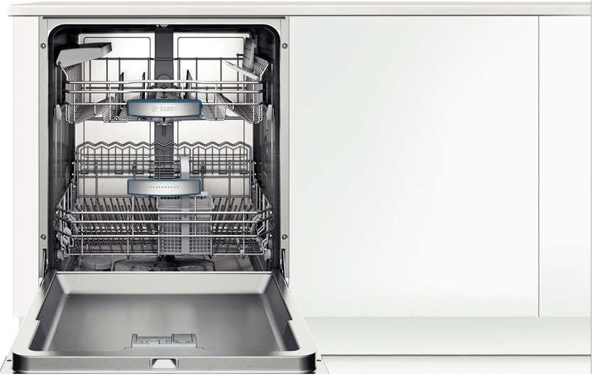 Встраиваемая модель Бош отлично впишется в любой интерьер, главное — правильно выбрать место, чтобы подвести коммуникации. Устанавливается в нишу целиком, полностью закрывается декоративной панелью. Обратите внимание: в комплекте не идет фасад, его необходимо установить самостоятельно. Имеет стандартные размеры, поэтому может не поместиться на очень маленькой кухне. В камеру можно загрузить ограниченное число комплектов: 13 шт. Комплектом считается набор посуды на одного человека, который нужен для полноценного приема пищи: глубокая и плоская тарелки, тарелка для салата, блюдце под чашку, сама чашка, ложка и вилка.