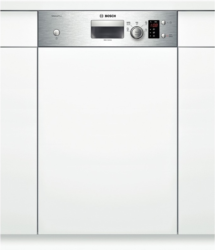Встраиваемая модель Бош отлично впишется в любой интерьер, главное — правильно выбрать место, чтобы подвести коммуникации. Обратите внимание: в комплекте не идет фасад, его необходимо установить самостоятельно. Устанавливается в нишу неполностью, остается открытой панель управления. Имеет уменьшенную ширину — благодаря этому поместится даже на очень маленькой кухне. В камеру можно загрузить ограниченное число комплектов: 9 шт. Комплектом считается набор посуды на одного человека, который нужен для полноценного приема пищи: глубокая и плоская тарелки, тарелка для салата, блюдце под чашку, сама чашка, ложка и вилка.