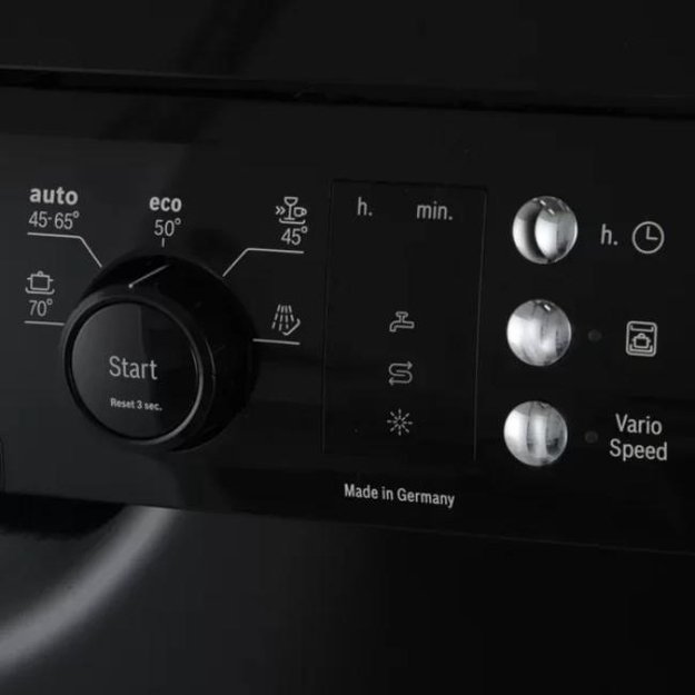 Встраиваемая модель Бош отлично впишется в любой интерьер, главное — правильно выбрать место, чтобы подвести коммуникации. Устанавливается в нишу неполностью, остается открытой панель управления. Имеет уменьшенную ширину — благодаря этому поместится даже на очень маленькой кухне. В камеру можно загрузить ограниченное число комплектов: 9 шт. Комплектом считается набор посуды на одного человека, который нужен для полноценного приема пищи: глубокая и плоская тарелки, тарелка для салата, блюдце под чашку, сама чашка, ложка и вилка.
