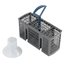 Корзина для столовых приборов — один из обязательных аксессуаров, которыми оснащается любая посудомоечная машина. Она представляет собой сетчатый пластиковый органайзер, в котором устанавливаются в вертикальном положении ложки, ножи и вилки. Корзина, как правило, разделяется на отдельные отсеки, в каждый из которых можно поместить один или несколько предметов. Зачастую сверху она закрывается специальной крышкой, которая также служит для разделения приборов, способствуя более тщательному их мытью.