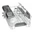 Корзина для столовых приборов — один из обязательных аксессуаров, которыми оснащается любая посудомоечная машина. Она представляет собой сетчатый пластиковый органайзер, в котором устанавливаются в вертикальном положении ложки, ножи и вилки. Корзина, как правило, разделяется на отдельные отсеки, в каждый из которых можно поместить один или несколько предметов. Зачастую сверху она закрывается специальной крышкой, которая также служит для разделения приборов, способствуя более тщательному их мытью.