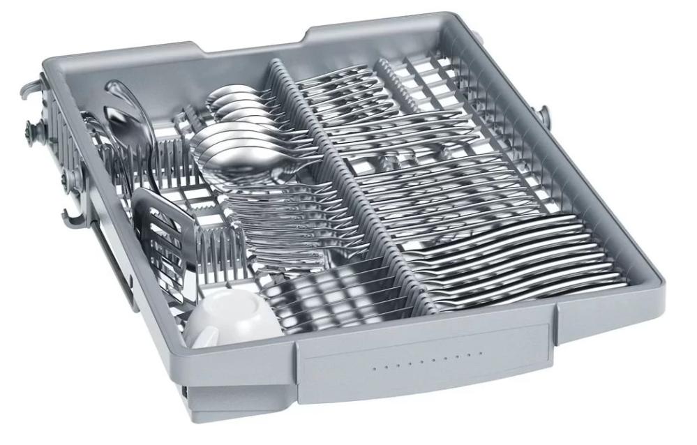 Как правило, полки для столовых приборов находятся в верхней корзине — таким образом, чтобы под ними можно было расположить, например, небольшие чашки. Часто полки оснащаются специальными разделителями, которые позволяют зафиксировать любой предмет, чтобы он не мог случайно сдвинуться с перекрыть доступ к соседним. В ряде моделей для столовых приборов предусматриваются большие полки, которые размещаются на третьем уровне. Такая конструкция считается оптимальной, так как освобождается место в корзинах для более крупных предметов. Такие полки достигают в высоту 5 см, так что на них можно размещать не только обычные ножи, ложки или вилки, но и более объемные половники, шумовки, лопатки, терки и другую подобную утварь.