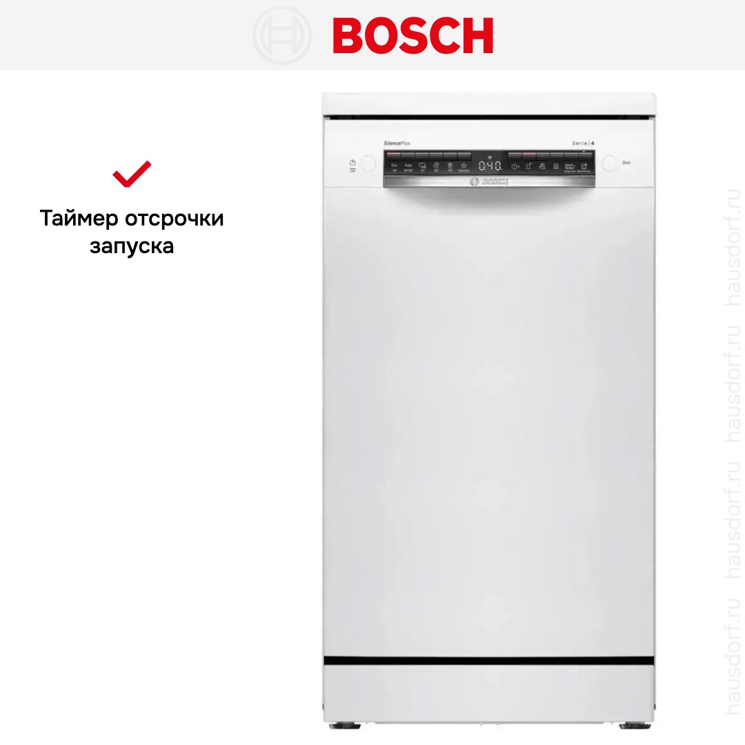 Посудомоечная машина Bosch SPS4EMW24E — это стильное и практичное решение для современной кухни, сочетающее в себе компактность, функциональность и надёжность. Благодаря узкому корпусу размером 84,5×45×60 см модель легко размещается даже в ограниченном пространстве, при этом вмещая до 10 комплектов посуды — идеальный объём для семьи из трёх-четырёх человек. Техника выполнена в белом цвете с контрастной чёрной панелью управления, что придаёт ей элегантный и современный вид. Внутренняя камера изготовлена из нержавеющей стали, что обеспечивает долговечность, устойчивость к коррозии и простоту в уходе. Устройство оснащено пятью стандартными программами и четырьмя температурными режимами, что позволяет подобрать оптимальный цикл для любого типа загрязнений — от лёгкой пены до засохших остатков пищи. Сушка осуществляется с помощью теплообменника, что гарантирует эффективное и бережное удаление влаги без резких перепадов температуры, защищая стекло и пластик от деформации. Электронное управление осуществляется через открытую панель с цифровым дисплеем, на котором отображаются ключевые параметры процесса. Функция отложенного старта на срок от 1 до 24 часов позволяет гибко планировать работу техники — например, запускать её ночью или в период действия минимальных тарифов. Низкий уровень шума, продуманная эргономика корзин и защита от протечек делают эксплуатацию максимально комфортной и безопасной. Энергоэффективность и разумный расход воды подчёркивают экологичность и экономичность модели из серии Serie | 4. Этот прибор станет надёжным помощником, избавив вас от рутинной ручной мойки и обеспечив безупречную чистоту после каждого цикла.