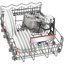 Внутреннее пространство продумано до мелочей: верхняя корзина легко регулируется по высоте, а специальные держатели бережно фиксируют бокалы, фужеры и хрупкую керамику. Функция ExtraDry усиливает завершающую фазу сушки, оставляя даже пластиковые контейнеры и стеклянные изделия абсолютно сухими. Режим SpeedPerfect+ сокращает длительность цикла почти на две трети, не снижая качества очистки — идеальное решение для занятых пользователей.