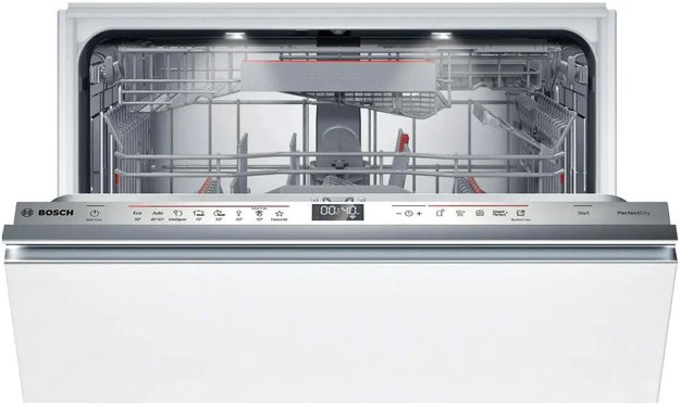 Встраиваемая модель Бош отлично впишется в любой интерьер, главное — правильно выбрать место, чтобы подвести коммуникации. Устанавливается в нишу целиком, полностью закрывается декоративной панелью. Обратите внимание: в комплекте не идет фасад, его необходимо установить самостоятельно. Имеет стандартные размеры, поэтому может не поместиться на очень маленькой кухне. В камеру можно загрузить ограниченное число комплектов: 13 шт. Комплектом считается набор посуды на одного человека, который нужен для полноценного приема пищи: глубокая и плоская тарелки, тарелка для салата, блюдце под чашку, сама чашка, ложка и вилка.