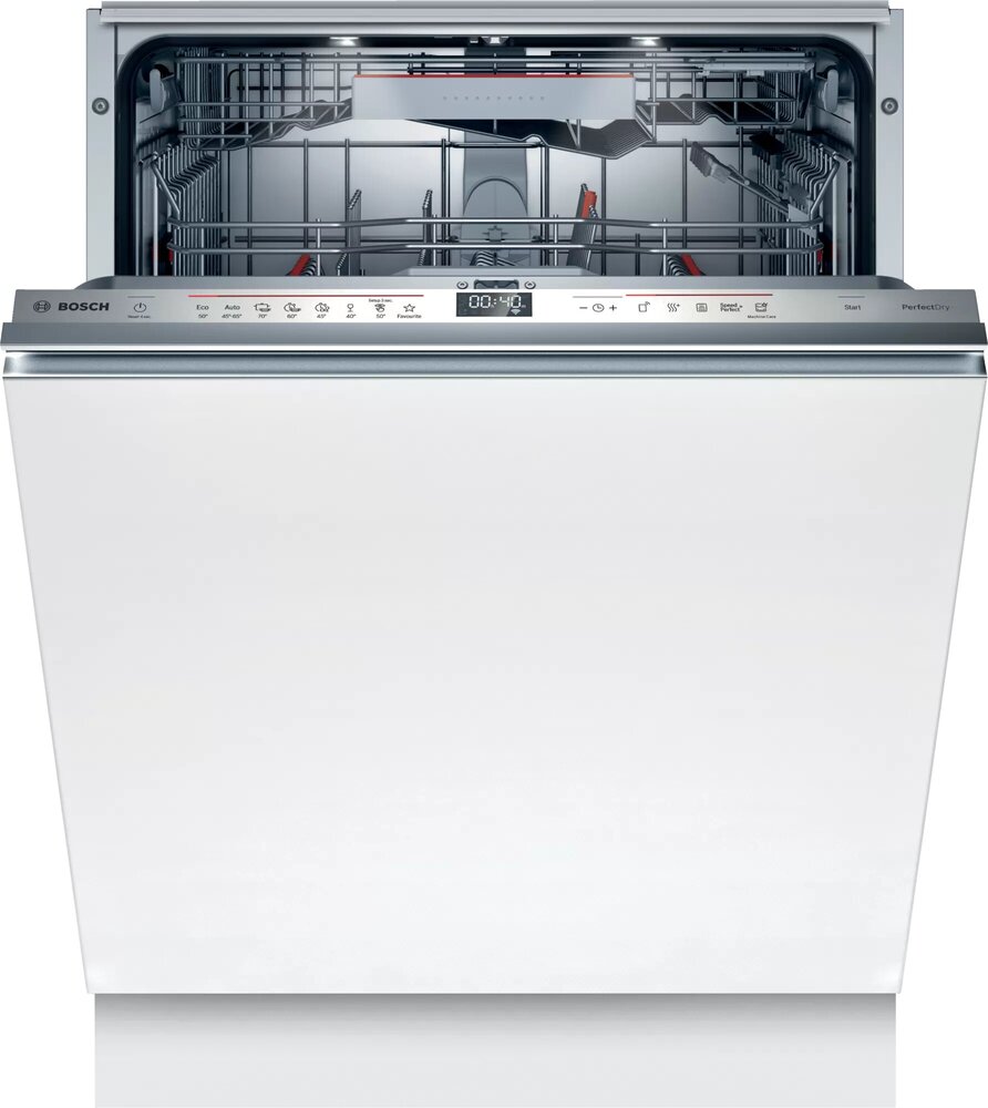 Встраиваемая модель Бош отлично впишется в любой интерьер, главное — правильно выбрать место, чтобы подвести коммуникации. Устанавливается в нишу целиком, полностью закрывается декоративной панелью. Обратите внимание: в комплекте не идет фасад, его необходимо установить самостоятельно. Имеет стандартные размеры, поэтому может не поместиться на очень маленькой кухне. В камеру можно загрузить ограниченное число комплектов: 13 шт. Комплектом считается набор посуды на одного человека, который нужен для полноценного приема пищи: глубокая и плоская тарелки, тарелка для салата, блюдце под чашку, сама чашка, ложка и вилка.