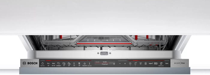 Дисплей на сенсорной или кнопочной панели управления посудомоечной машиной позволяет получить информацию о состоянии устройства, а также отрегулировать параметры работы. Во встраиваемых моделях с закрытой панелью управления он будет недоступен на протяжении цикла мытья, в отдельностоящих устройствах может располагаться на фасаде.
