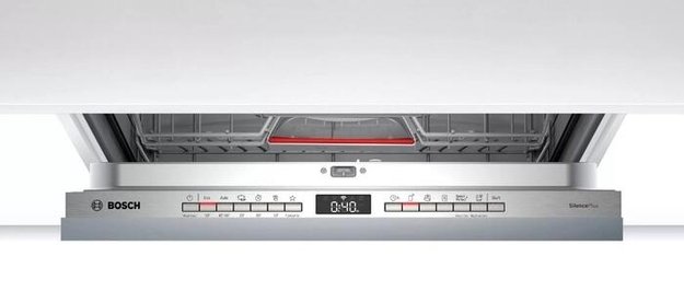 Встраиваемая модель Бош отлично впишется в любой интерьер, главное — правильно выбрать место, чтобы подвести коммуникации. Устанавливается в нишу целиком, полностью закрывается декоративной панелью. Обратите внимание: в комплекте не идет фасад, его необходимо установить самостоятельно. Имеет стандартные размеры, поэтому может не поместиться на очень маленькой кухне. В камеру можно загрузить ограниченное число комплектов: 13 шт. Комплектом считается набор посуды на одного человека, который нужен для полноценного приема пищи: глубокая и плоская тарелки, тарелка для салата, блюдце под чашку, сама чашка, ложка и вилка.