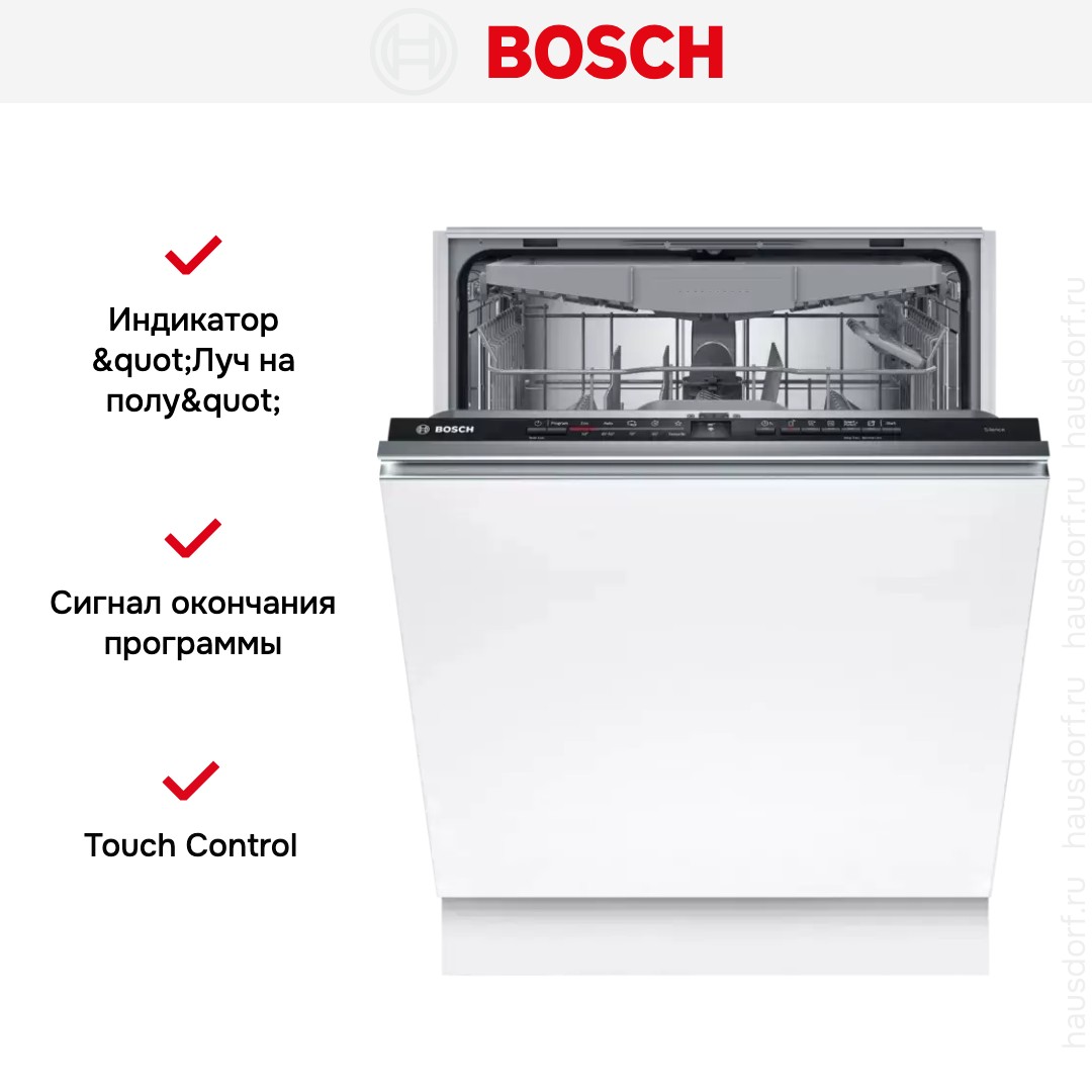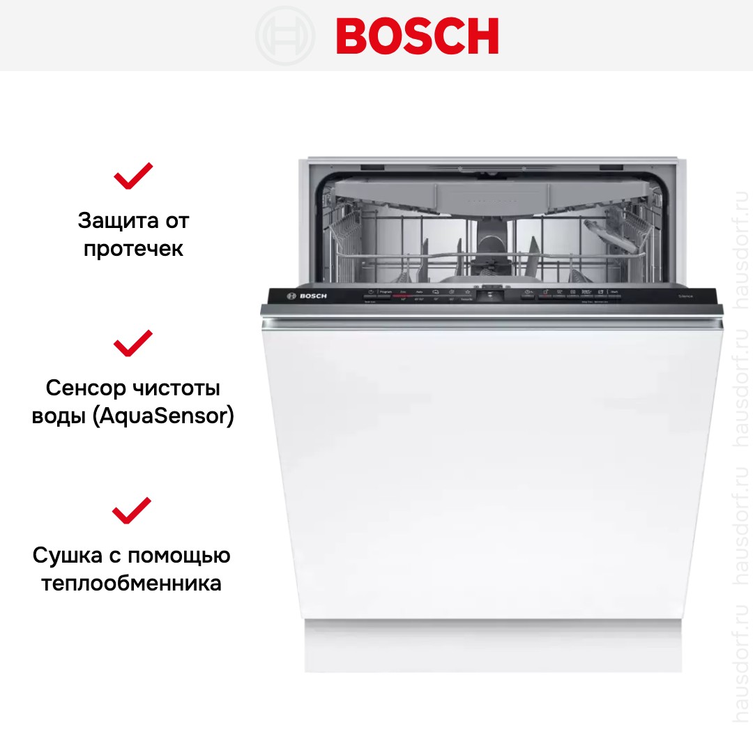 Встраиваемая посудомоечная машина Bosch SMV2HVX02E — идеальное решение для современной кухни, где важны компактность, функциональность и энергоэффективность. Данная модель разработана с учётом требований к экономии ресурсов и максимальному удобству эксплуатации. Устройство оснащено системой AquaStop, гарантирующей полную защиту от протечек, что особенно ценно в условиях ограниченного пространства. Благодаря классу энергопотребления A++ техника расходует минимальное количество электроэнергии, а инновационная технология EcoSilence Drive обеспечивает тихую работу даже в ночное время.