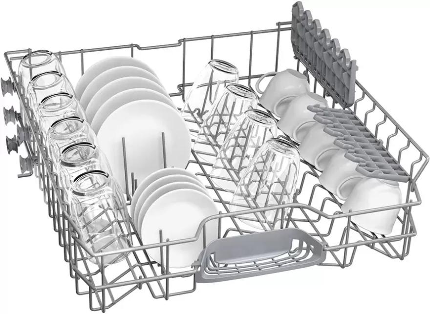 Корзина для столовых приборов — один из обязательных аксессуаров, которыми оснащается любая посудомоечная машина. Она представляет собой сетчатый пластиковый органайзер, в котором устанавливаются в вертикальном положении ложки, ножи и вилки. Корзина, как правило, разделяется на отдельные отсеки, в каждый из которых можно поместить один или несколько предметов. Зачастую сверху она закрывается специальной крышкой, которая также служит для разделения приборов, способствуя более тщательному их мытью.