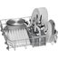 Встраиваемая модель Бош отлично впишется в любой интерьер, главное — правильно выбрать место, чтобы подвести коммуникации. Устанавливается в нишу целиком, полностью закрывается декоративной панелью. Обратите внимание: в комплекте не идет фасад, его необходимо установить самостоятельно. Имеет стандартные размеры, поэтому может не поместиться на очень маленькой кухне. В камеру можно загрузить ограниченное число комплектов: 12 шт. Комплектом считается набор посуды на одного человека, который нужен для полноценного приема пищи: глубокая и плоская тарелки, тарелка для салата, блюдце под чашку, сама чашка, ложка и вилка.