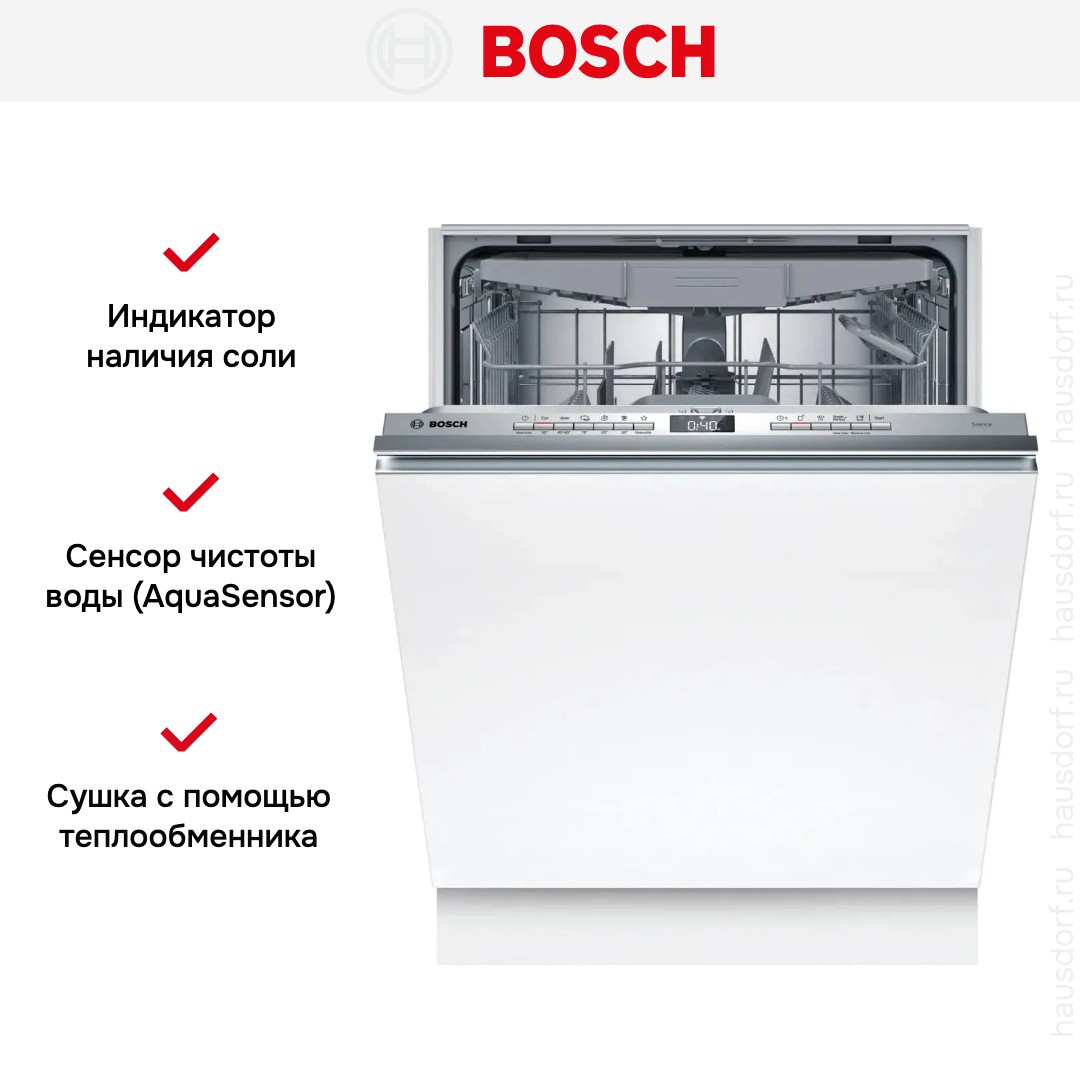 Встраиваемая посудомоечная машина Bosch SMV4HVX02E — это отличное решение для тех, кто ценит максимальную интеграцию техники в кухонный гарнитур. Полностью встраиваемая конструкция скрывает корпус за фасадом. Габариты и возможность регулировки по высоте обеспечивают точную подгонку под нишу 81.5-87.5 × 60 × 55 см. Жесткое крепление фасада надежно фиксирует дверь, сохраняет аккуратный внешний вид и предотвращает провисание при интенсивной эксплуатации.