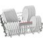 Направляющие для тарелок в корзинах посудомоечных машин позволяют разместить фаянсовую, фарфоровую, стеклянную посуду максимально безопасно и обеспечить ее лучшую очистку. Тарелки и блюдца разного размера могут размещаться как в верхней, так и в нижней корзине. В нижней части верхней корзины, как правило, имеются волнообразные или полукруглые выступы для установки небольших тарелок, мисок и блюдец. Специалисты рекомендуют устанавливать посуду в передней части корзины углублением назад, а тарелки в задней части корзины — углублением вперед, чтобы струи воды могли очистить их более эффективно.