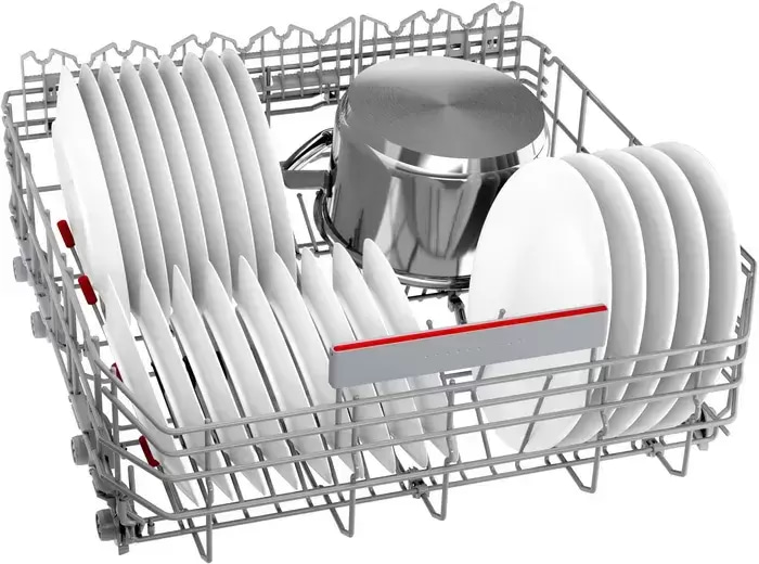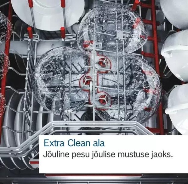 Внутреннее пространство продумано до мелочей: верхняя корзина регулируется по высоте, а специальные держатели бережно фиксируют бокалы и хрупкую керамику. Функция ExtraDry усиливает финальную сушку, оставляя столовые приборы и стеклянные изделия абсолютно сухими. Режим SpeedPerfect+ сокращает время цикла на 65% без снижения качества очистки — идеальное решение для занятых пользователей.