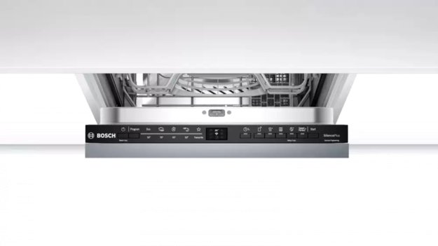 Встраиваемая модель Бош отлично впишется в любой интерьер, главное — правильно выбрать место, чтобы подвести коммуникации. Устанавливается в нишу целиком, полностью закрывается декоративной панелью. Обратите внимание: в комплекте не идет фасад, его необходимо установить самостоятельно. Имеет уменьшенную ширину — благодаря этому поместится даже на очень маленькой кухне. В камеру можно загрузить ограниченное число комплектов: 9 шт. Комплектом считается набор посуды на одного человека, который нужен для полноценного приема пищи: глубокая и плоская тарелки, тарелка для салата, блюдце под чашку, сама чашка, ложка и вилка.