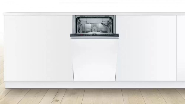Встраиваемая модель Бош отлично впишется в любой интерьер, главное — правильно выбрать место, чтобы подвести коммуникации. Устанавливается в нишу целиком, полностью закрывается декоративной панелью. Обратите внимание: в комплекте не идет фасад, его необходимо установить самостоятельно. Имеет уменьшенную ширину — благодаря этому поместится даже на очень маленькой кухне. В камеру можно загрузить ограниченное число комплектов: 10 шт. Комплектом считается набор посуды на одного человека, который нужен для полноценного приема пищи: глубокая и плоская тарелки, тарелка для салата, блюдце под чашку, сама чашка, ложка и вилка.