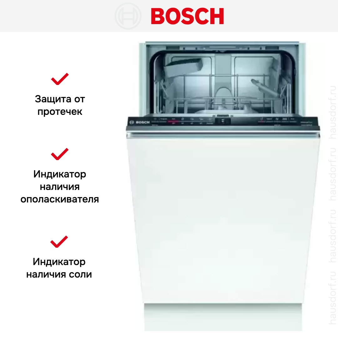 Встраиваемая модель Бош отлично впишется в любой интерьер, главное — правильно выбрать место, чтобы подвести коммуникации. Устанавливается в нишу целиком, полностью закрывается декоративной панелью. Обратите внимание: в комплекте не идет фасад, его необходимо установить самостоятельно. Имеет уменьшенную ширину — благодаря этому поместится даже на очень маленькой кухне. В камеру можно загрузить ограниченное число комплектов: 9 шт. Комплектом считается набор посуды на одного человека, который нужен для полноценного приема пищи: глубокая и плоская тарелки, тарелка для салата, блюдце под чашку, сама чашка, ложка и вилка.