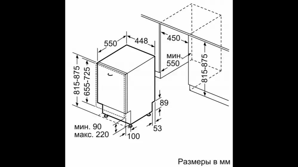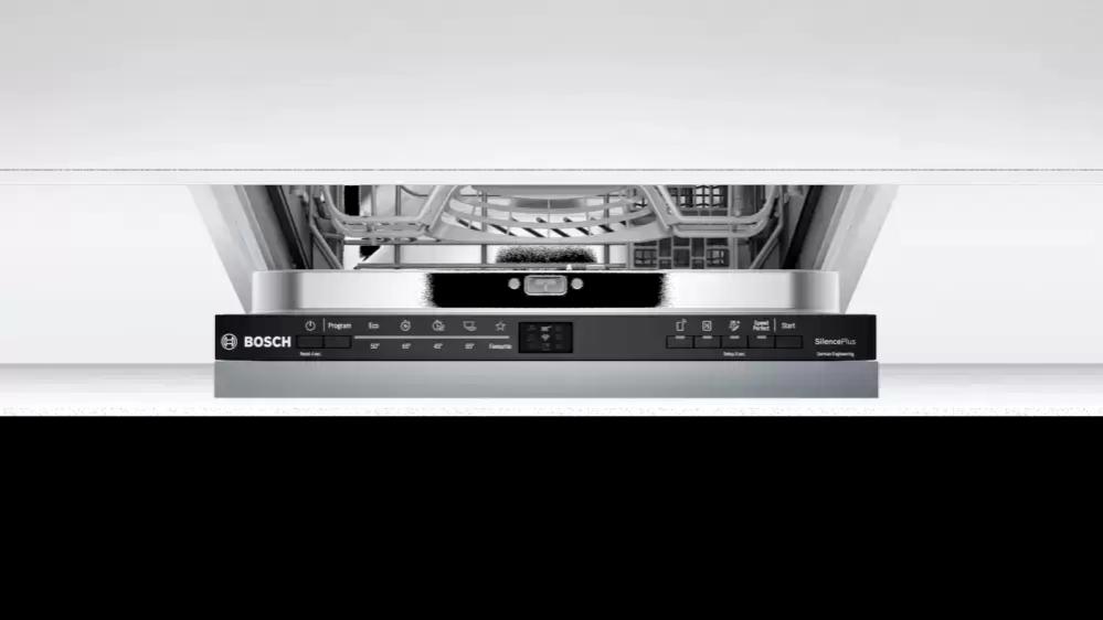 Встраиваемая модель Бош отлично впишется в любой интерьер, главное — правильно выбрать место, чтобы подвести коммуникации. Устанавливается в нишу целиком, полностью закрывается декоративной панелью. Обратите внимание: в комплекте не идет фасад, его необходимо установить самостоятельно. Имеет уменьшенную ширину — благодаря этому поместится даже на очень маленькой кухне. В камеру можно загрузить ограниченное число комплектов: 9 шт. Комплектом считается набор посуды на одного человека, который нужен для полноценного приема пищи: глубокая и плоская тарелки, тарелка для салата, блюдце под чашку, сама чашка, ложка и вилка.