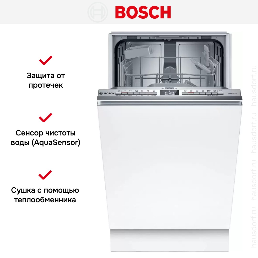 Встраиваемая посудомоечная машина Bosch SPV4HKX10E — компактное и энергоэффективное решение для современной кухни, сочетающее надёжность, тихую работу и высокое качество очистки. Модель рассчитана на загрузку до 10 комплектов посуды, что делает её идеальной для небольшой семьи или квартир с ограниченным пространством. Благодаря продуманной внутренней организации, регулируемой верхней корзине и складным держателям легко размещаются как столовые приборы, так и объёмные кастрюли, сковороды или хрупкие бокалы.