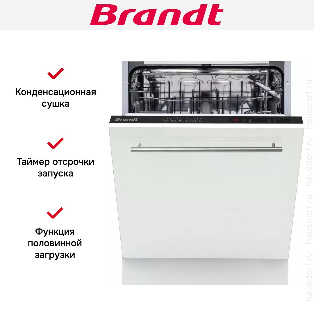 Посудомоечная машина Brandt BDFI37EB — полностью встраиваемая модель от известного производителя техники. Устройство интегрируется в нишу, а на переднюю стенку навешивается фасад кухонного гарнитура, поэтому изделие подойдет для установки в любое стилистическое решение: от классики и ретро до современного минимализма. Для качественной работы и комфортного обслуживания предусмотрена индикация, которая оповещает пользователя о том, что необходимо пополнить резервуары с солью и ополаскивателем. Внутри — две вместительные корзины и отдельный переносной бокс для столовых прибором. Для того, чтобы легко разместить крупногабаритную посуду или предметы нестандартной формы в посудомоечной машине Брандт BDFI37EB предусмотрена регулировка по высоте верхней корзины. Тихая работа — еще одно достоинство изделия.