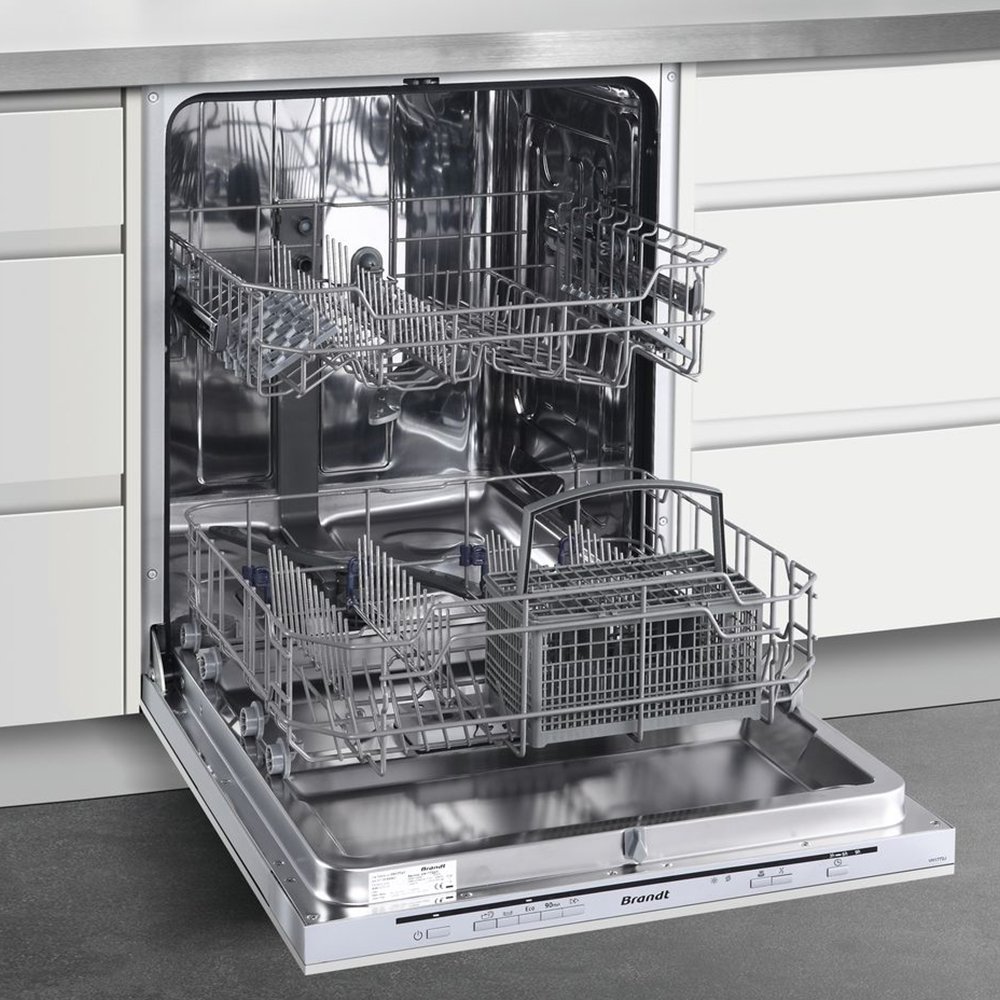 Посудомоечная машина Brandt VH1772J — встраиваемая модель от известного производителя. Прибор устанавливается в специальную нишу, а на лицевую сторону навешивается фасад кухонного гарнитура, за счет чего изделие подойдет для интеграции в любое стилистическое решение интерьера. Устройство отличает тихая работа, которая не создает дискомфорт для пользователей. Камеры выполнена из нержавеющей стали — качественного материала, который устойчив к постоянному воздействию воды и моющего средства. Для удобства предусмотрены разнообразные держатели, которые позволяют правильно расположить посуду. Например, специальные фиксаторы для бокалов обеспечивают бережное мытье хрупких изделий. Посудомоечная машина Брандт VH1772J располагает двумя металлическими корзинами, которые легко выдвигаются из камеры для загрузки и выгрузки.