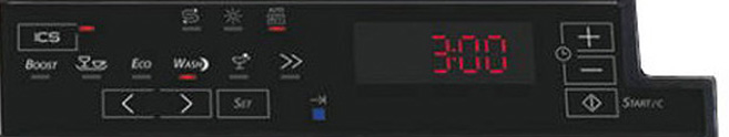 Кроме того, в зависимости от модели на панели управления могут присутствовать кнопки для задания отсрочки старта, для дополнительного полоскания, для запуска быстрой программы, для мойки с использованием комбинированных моющих средств «3 в 1» и для половинной загрузки. В более новых моделях при помощи горячих клавиш «+» и «-» можно регулировать температуру мытья, а также выбирать мойку в одной из корзин при половинной загрузке.