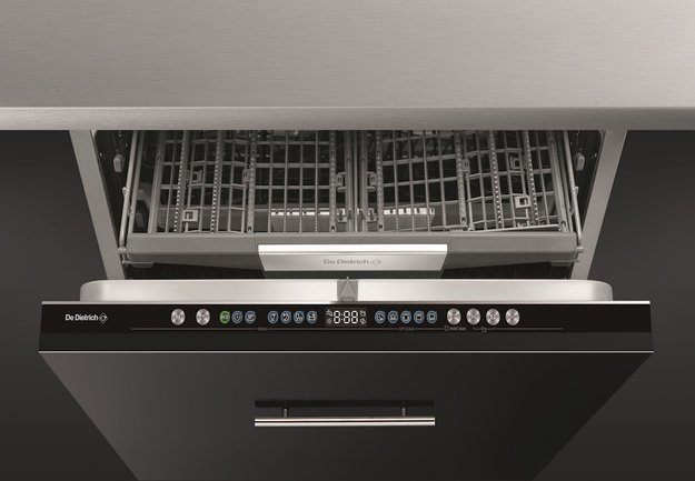 Встраиваемая модель Де Дитрих отлично впишется в любой интерьер, главное — правильно выбрать место, чтобы подвести коммуникации. Устанавливается в нишу целиком, полностью закрывается декоративной панелью. Обратите внимание: в комплекте не идет фасад, его необходимо установить самостоятельно. Имеет стандартные размеры, поэтому может не поместиться на очень маленькой кухне. В камеру можно загрузить ограниченное число комплектов: 14 шт. Комплектом считается набор посуды на одного человека, который нужен для полноценного приема пищи: глубокая и плоская тарелки, тарелка для салата, блюдце под чашку, сама чашка, ложка и вилка.