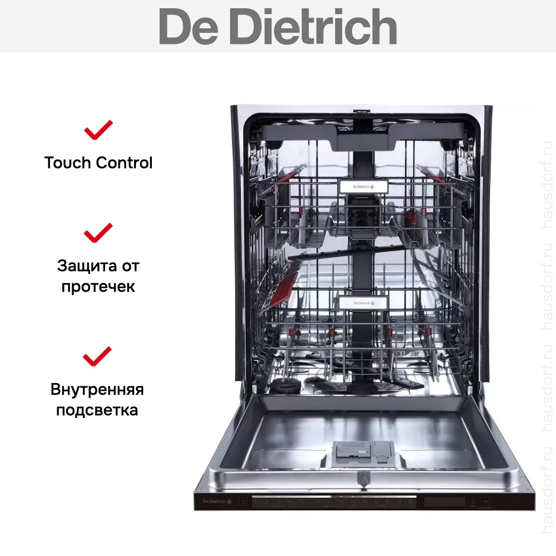 Встраиваемая посудомоечная машина De Dietrich DCJ632DQB — это элегантное и функциональное решение для современной кухни, сочетающее в себе вместительность, надёжность и продуманный дизайн. Полностью встраиваемая полноразмерная модель идеально маскируется за фасадом мебели, сохраняя целостность интерьера. Её габариты — 85,7 × 59,8 × 55 см, а рекомендуемые размеры ниши — 86 × 60 × 58 см — обеспечивают плотную и аккуратную установку без зазоров. Вместительность устройства составляет 16 комплектов посуды, что делает его оптимальным выбором для семей с активным образом жизни или для любителей принимать гостей. Сушка осуществляется по принципу конденсации, что гарантирует бережное и равномерное удаление влаги без риска повредить стеклянную или хрупкую посуду. Управление полностью электронное: закрытая сенсорная панель активируется только при необходимости, сохраняя лаконичный внешний вид. Цифровой дисплей отображает текущий этап программы, оставшееся время и доступные функции, обеспечивая полный контроль над процессом. Сенсорное управление обеспечивает интуитивно понятное взаимодействие, а таймер отсрочки запуска до 24 часов позволяет задать удобное время начала мойки — например, в ночное время, когда тарифы на электроэнергию снижены. Внутреннее пространство продумано до мелочей: корзины легко регулируются, а система разбрызгивания охватывает каждый уголок камеры. Техника работает тихо, эффективно и экономично, соответствует высоким стандартам качества и долговечности. Благодаря безупречной сборке и современному оснащению эта модель становится незаменимым помощником в быту.