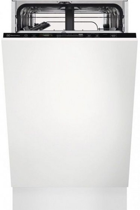 Встраиваемая модель Электролюкс отлично впишется в любой интерьер, главное — правильно выбрать место, чтобы подвести коммуникации. Обратите внимание: в комплекте не идет фасад, его необходимо установить самостоятельно. Имеет уменьшенную ширину — благодаря этому поместится даже на очень маленькой кухне. В камеру можно загрузить ограниченное число комплектов: 9 шт. Комплектом считается набор посуды на одного человека, который нужен для полноценного приема пищи: глубокая и плоская тарелки, тарелка для салата, блюдце под чашку, сама чашка, ложка и вилка.