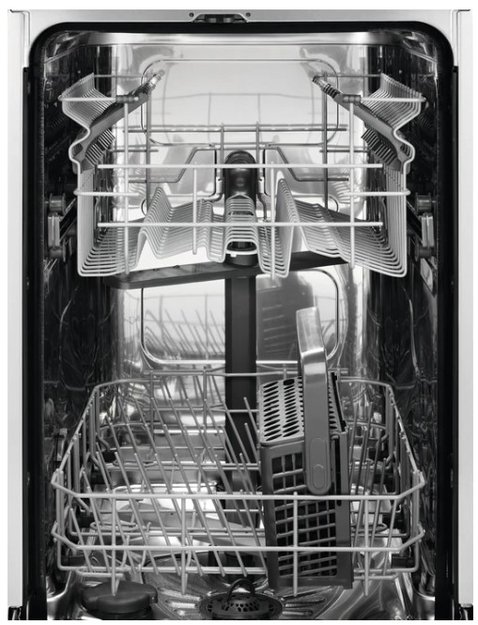 Electrolux ESL94201LO — полновстраиваемая посудомоечная машина шириной 45 см. Модель предусматривает возможность подключения как к холодной, так и к горячей воде. Для удобства размещения кастрюль и сковородок верхняя корзина устройства регулируется по высоте. Вместимость устройства — 9 комплектов посуды. Три температурных режима и пять стандартных программ, в том числе интенсивная, быстрая, экономичная мойка, позволяют ухаживать за посудой разной степени загрязненности. Машина оснащена интуитивно понятной электронной кнопочной системой управления. Класс мытья и сушки А гарантирует высокое качество работы.