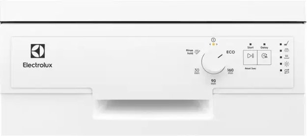 Отдельностоящая модель Электролюкс отлично впишется в кухонный интерьер, главное — правильно выбрать место, чтобы подвести коммуникации. Имеет уменьшенную ширину — благодаря этому поместится даже на очень маленькой кухне. В камеру можно загрузить ограниченное число комплектов: 10 шт. Комплектом считается набор посуды на одного человека, который нужен для полноценного приема пищи: глубокая и плоская тарелки, тарелка для салата, блюдце под чашку, сама чашка, ложка и вилка.