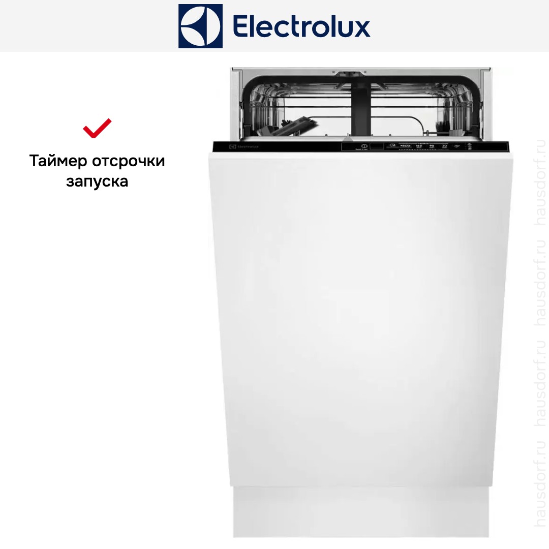 Посудомоечная машина Electrolux EEA12100L выполнена как полностью встраиваемая модель и скрывается под фасад вашей кухни. Она имеет узкий формат, который экономит место и сохраняет гармонию интерьера. Габариты 81.8×44.6×55 см позволяют установить агрегат в стандартный модуль 45 см. Благодаря полностью интегрированному исполнению передняя панель не нарушает общую линию кухонных шкафов.