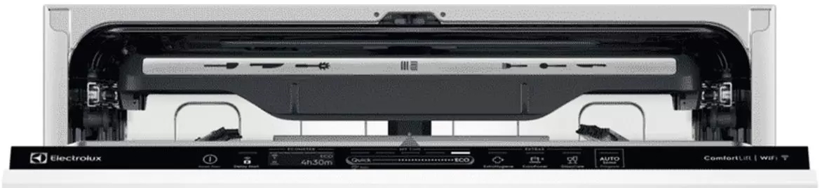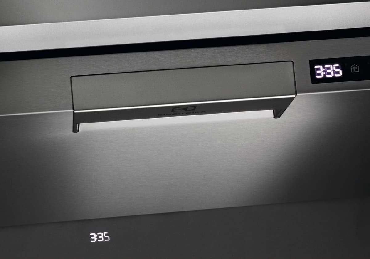 Встраиваемая модель Электролюкс отлично впишется в любой интерьер, главное — правильно выбрать место, чтобы подвести коммуникации. Устанавливается в нишу целиком, полностью закрывается декоративной панелью. Обратите внимание: в комплекте не идет фасад, его необходимо установить самостоятельно. Имеет стандартные размеры, поэтому может не поместиться на очень маленькой кухне. В камеру можно загрузить ограниченное число комплектов: 14 шт. Комплектом считается набор посуды на одного человека, который нужен для полноценного приема пищи: глубокая и плоская тарелки, тарелка для салата, блюдце под чашку, сама чашка, ложка и вилка.