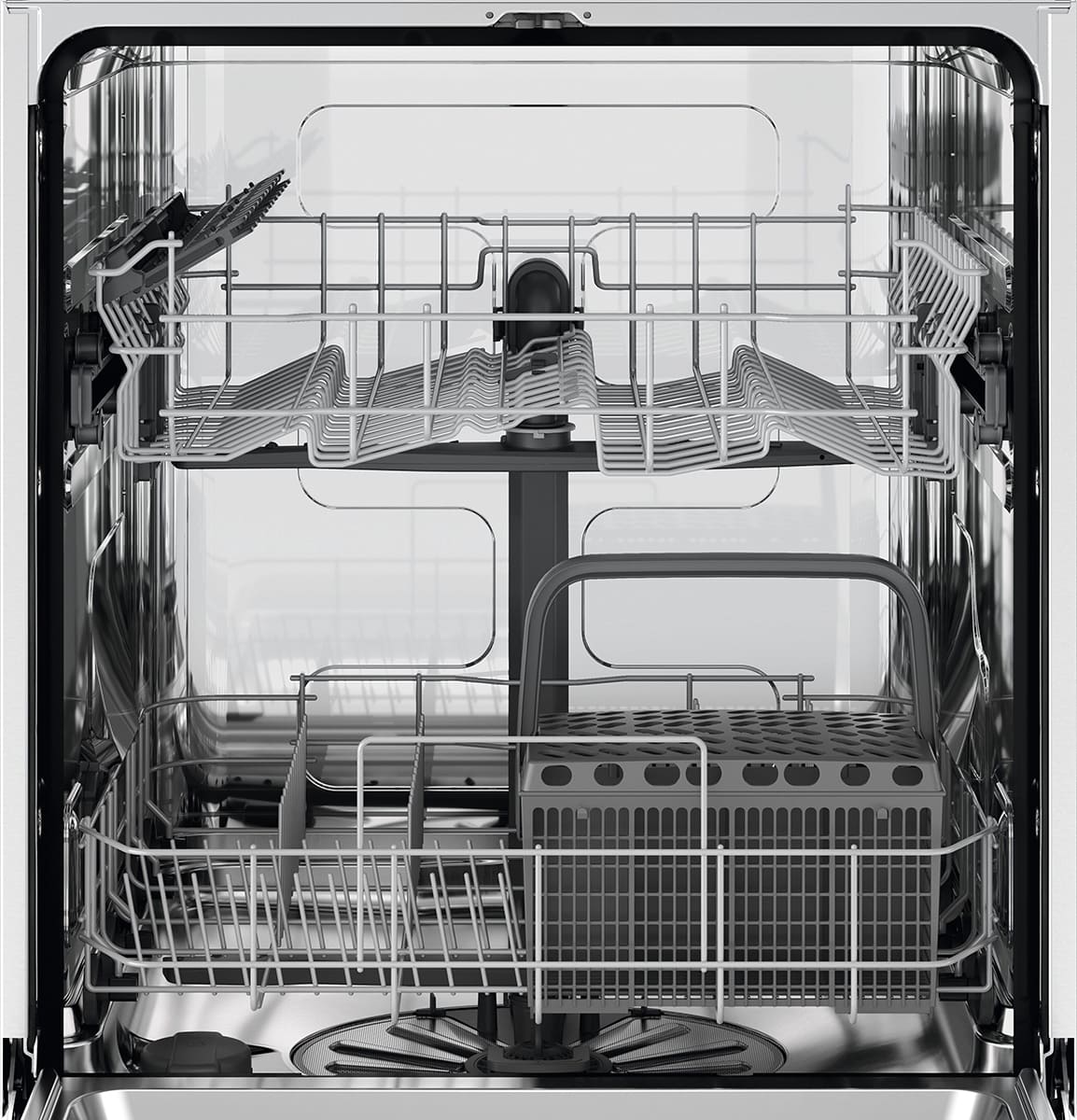Встраиваемая модель Электролюкс отлично впишется в любой интерьер, главное — правильно выбрать место, чтобы подвести коммуникации. Устанавливается в нишу целиком, полностью закрывается декоративной панелью. Обратите внимание: в комплекте не идет фасад, его необходимо установить самостоятельно. Имеет стандартные размеры, поэтому может не поместиться на очень маленькой кухне. В камеру можно загрузить ограниченное число комплектов: 13 шт. Комплектом считается набор посуды на одного человека, который нужен для полноценного приема пищи: глубокая и плоская тарелки, тарелка для салата, блюдце под чашку, сама чашка, ложка и вилка.