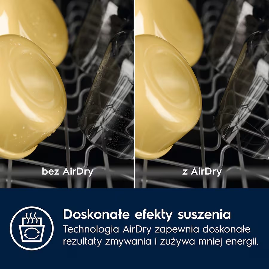 Сушка AirDry в посудомоечных машинах Electrolux позволяет досушить посуду посредством естественного притока воздуха. По завершению рабочего цикла дверца посудомоечной машины автоматически приоткрывается на 10 см, что позволяет избежать появления пятен, разводов и неприятного запаха.