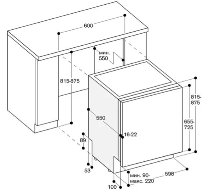 - Размеры ниши для встраивания (ВхШхГ): 81.5 - 92.5 х 60 х 55 см