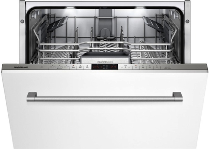 Встраиваемая модель Гаггенау отлично впишется в любой интерьер, главное — правильно выбрать место, чтобы подвести коммуникации. Устанавливается в нишу целиком, полностью закрывается декоративной панелью. Обратите внимание: в комплекте не идет фасад, его необходимо установить самостоятельно. Имеет стандартные размеры, поэтому может не поместиться на очень маленькой кухне. В камеру можно загрузить ограниченное число комплектов: 13 шт. Комплектом считается набор посуды на одного человека, который нужен для полноценного приема пищи: глубокая и плоская тарелки, тарелка для салата, блюдце под чашку, сама чашка, ложка и вилка.